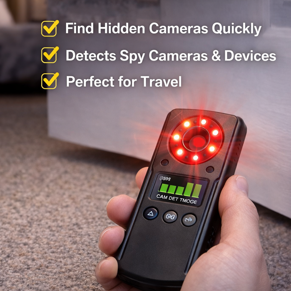 The included detector is specifically engineered to spot the tiny lenses used in modern spy devices. By scanning your room, you can identify hidden threats in smoke detectors, clocks, or mirrors, ensuring your private moments stay private, whether you are staying in a hotel or a rental.